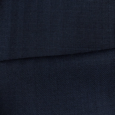 What am I? A classic, deep navy herringbone with a sharp, defined chevron pattern. I offer the perfect balance of tradition and luxury, providing a textured look that stays crisp throughout the day.