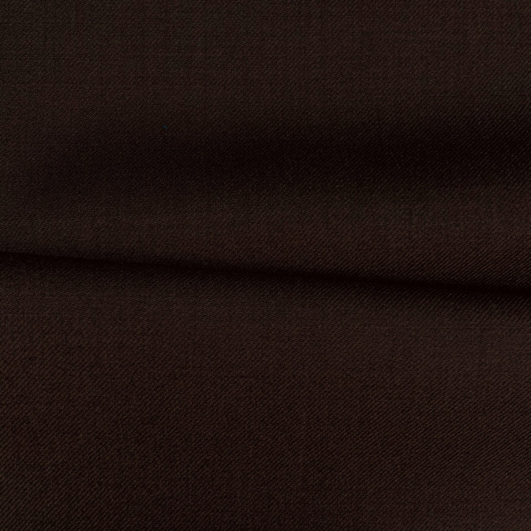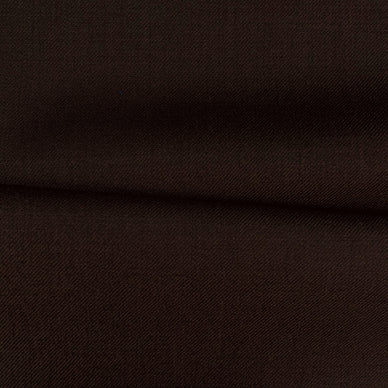 What am I? I am a rich, warm chestnut brown suiting with a fine, dense twill weave. Woven at 275G/M, I offer a luxurious, smooth finish that brings a classic, grounded feel to any tailored garment.