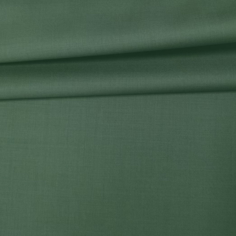 What am I? A soft, muted sage olive suiting with a clean, matte twill finish. My 275G/M weight ensures a fluid drape, making me ideal for modern unstructured tailoring or classic separate trousers.
